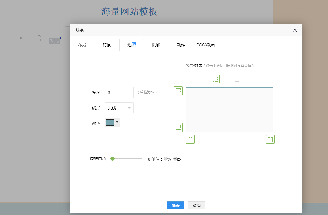 中间部分线条加粗变色,可以再拖一个【线条】组件至网页中,设置线条的边框和颜色。如图所示: