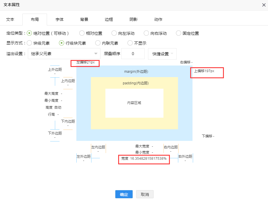 3.按需进行设置组件边距、偏移的值,虽然比较简单,但设置的时候还是要适当细心哦。