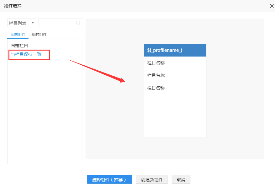 因为是指定栏目,则需要新建一个列表页,则可以通过分享 新建我的组件,然后将组件拖至页面,这样就可以快速的新建一个风格一致的内页。
