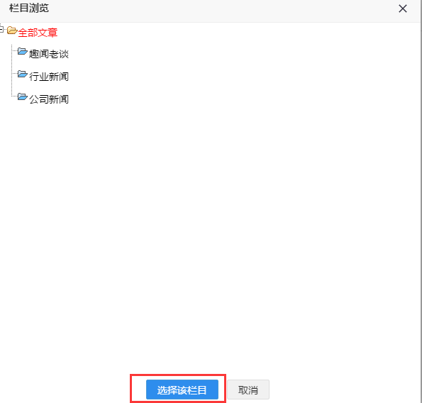 选择栏目,如果全部都需要点击根栏目即可。如图所示: