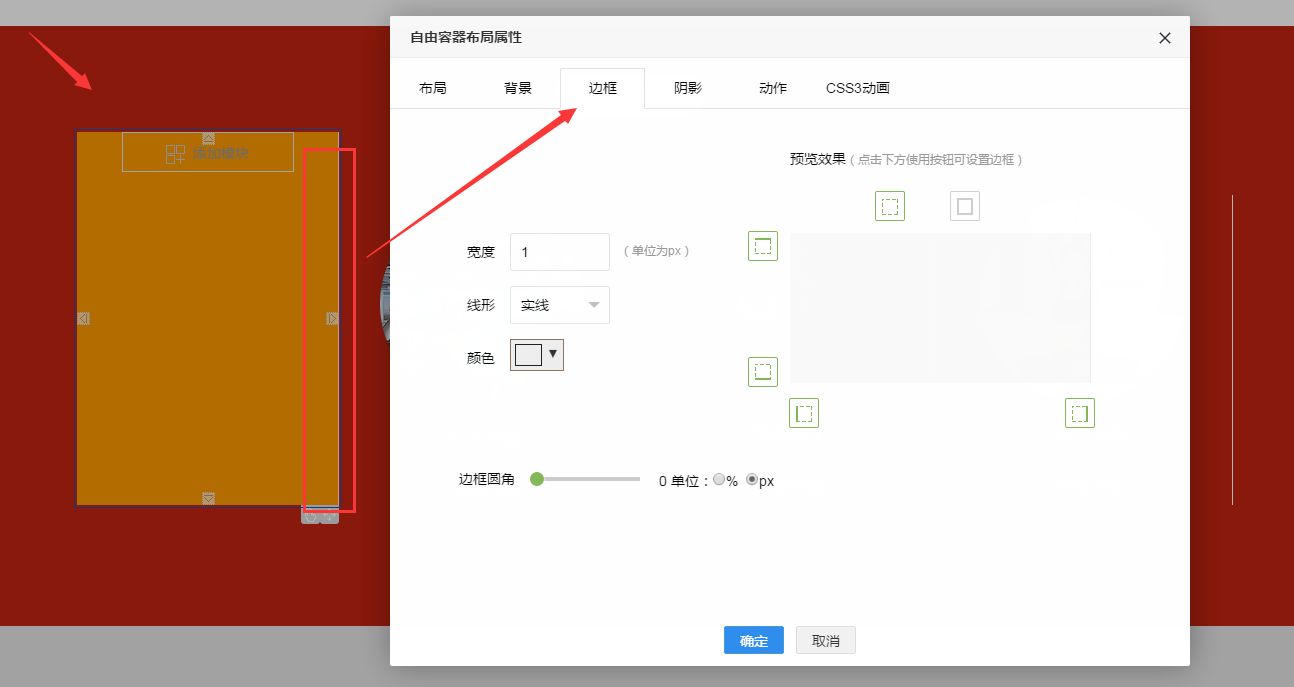 1,给自由容器设置右侧边框的颜色。如图所示: