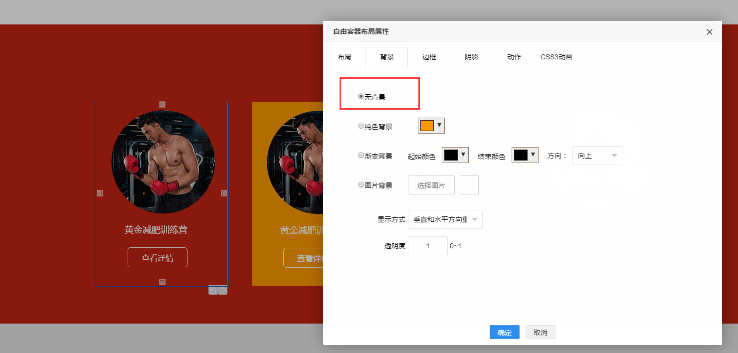 然后,去掉自由容器中的背景色。如图所示: