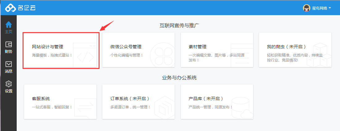 4.点击【基础设置】-【全站设置】,勾选启用名企云客服,选中刚刚填写的客服部署名称,点击网页上【保存】按钮,即可完成客服部署。