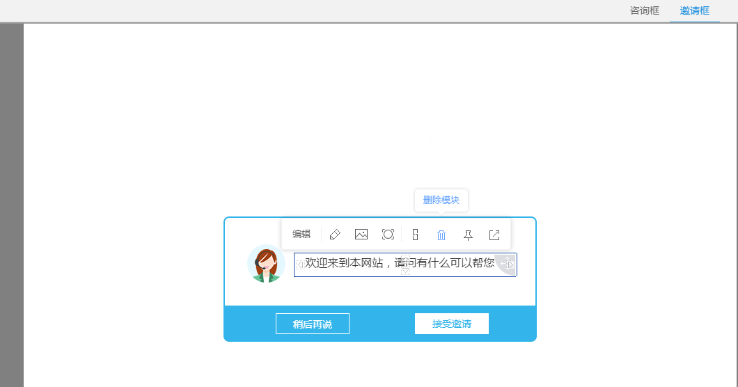 点击邀请框,邀请框也可以修改文字、颜色等,如图所示: