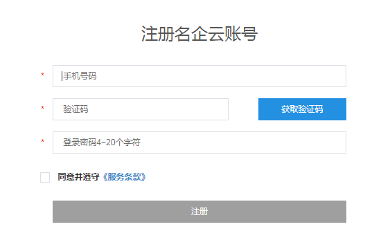 在名企云官网http://www.mqy.com.cn/,注册账号。