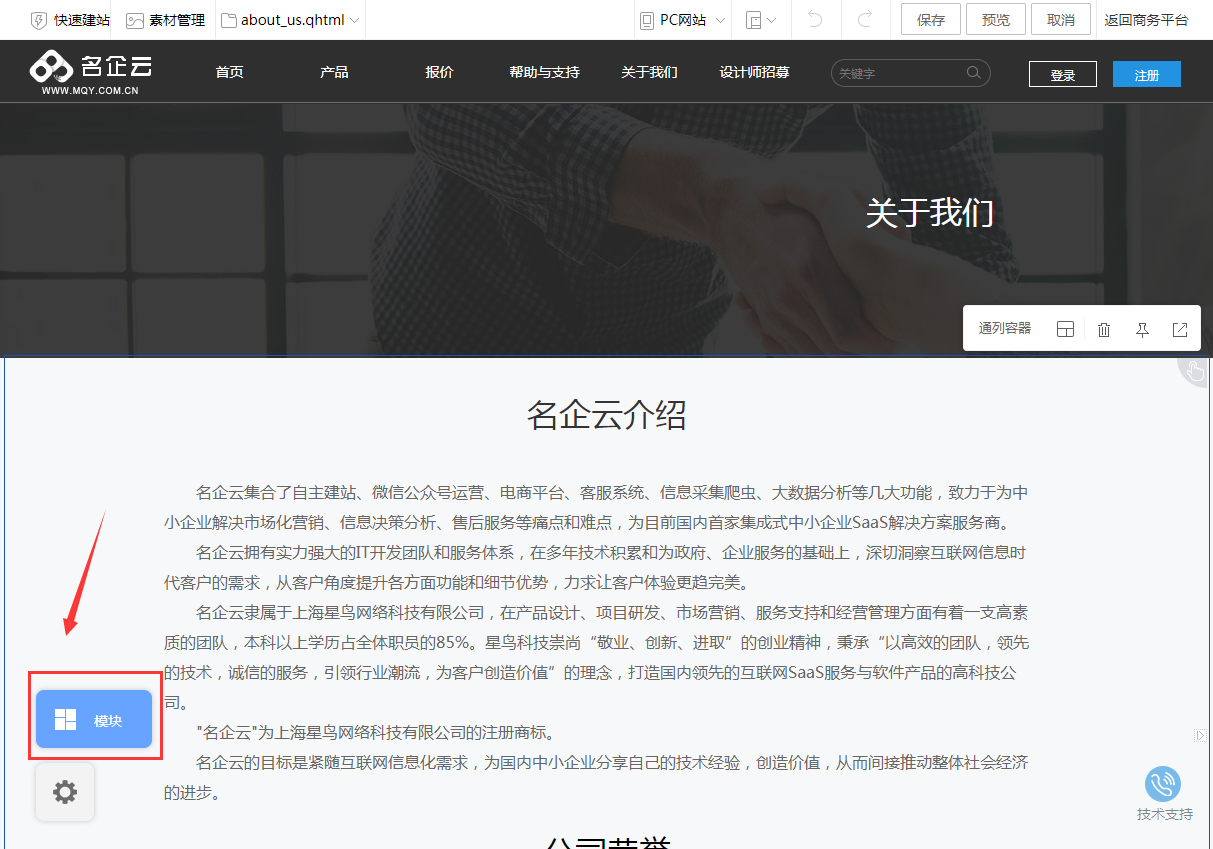 名企云自主建站系统致力于帮助中小企业快速打造专属于自己的个性化网站。用户无需租用空间,无需懂技术代码,只需注册开通,即可轻松创建和管理企业官网、电商网站、移动网站及微网站。