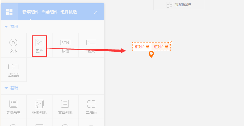 (2)添加新组件:点击左下角的模块菜单,出现组件选择库。
