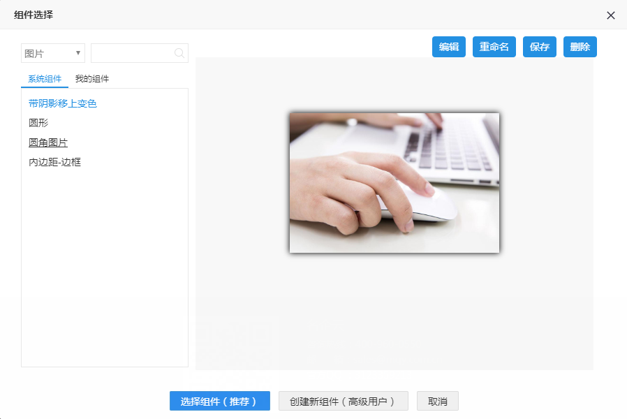选择组件样式,用户可选择系统组件,也可创建个性化组件(具体操作详见本模块的操作手册)。