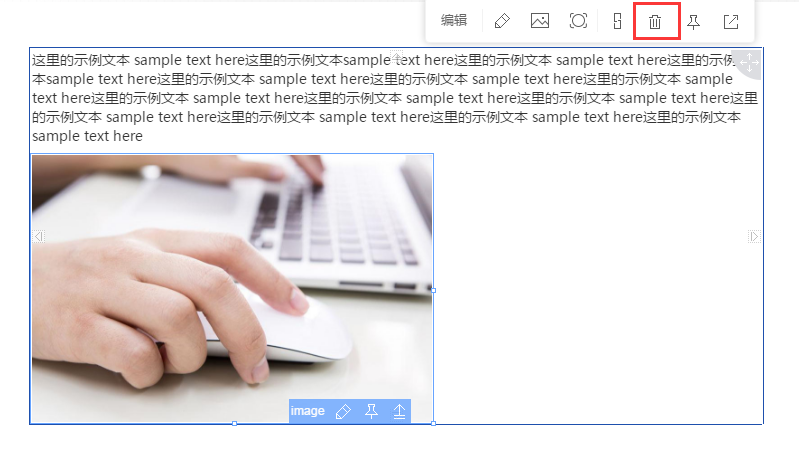 点击快捷栏中红色框内的删除图标,即可对目标组件进行删除。