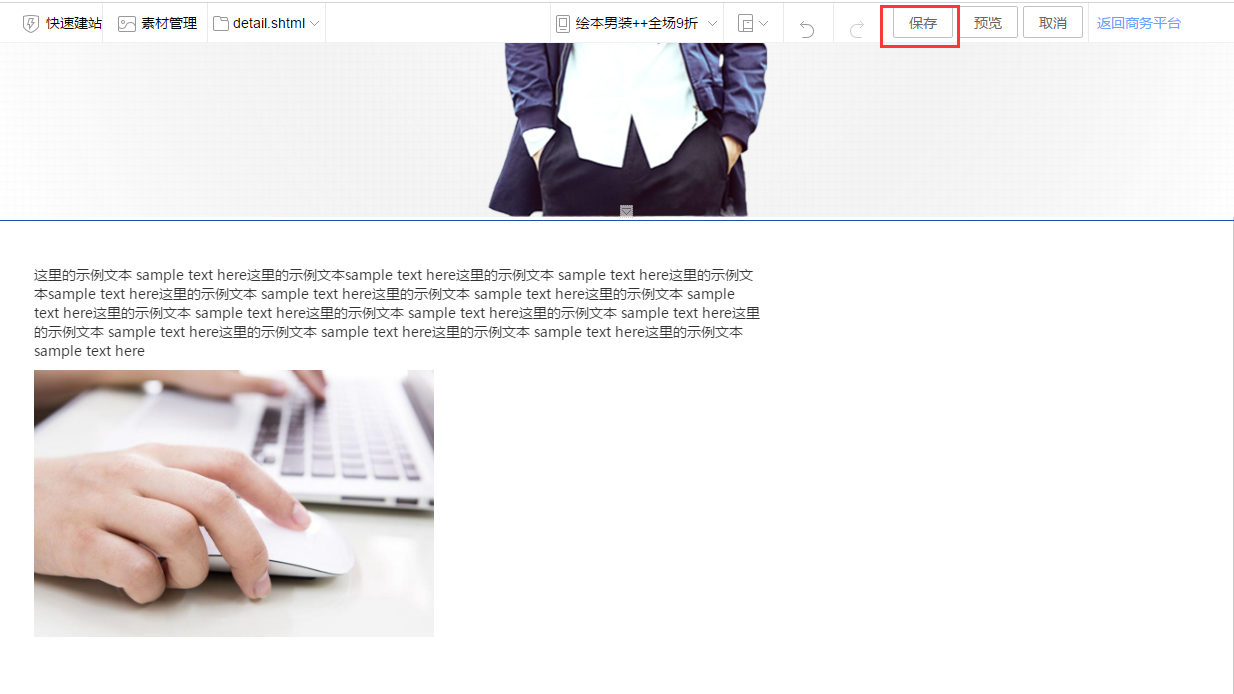 3. 可以对页面中各个位置的模块进行即时编辑并保存