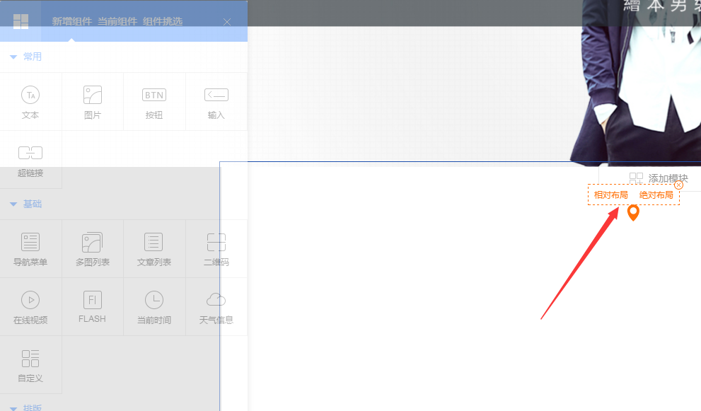 点击箭头所指的 “相对布局 绝对布局”进行组件排版布局。