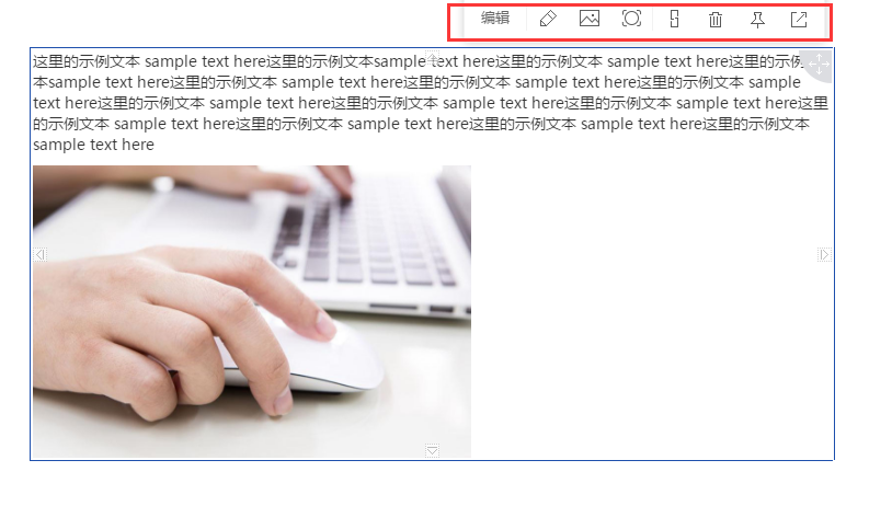 点击 “编辑” 按钮,可以更换组件内的文字和图片。其余的设置属性会在属性文章里面详细讲解。