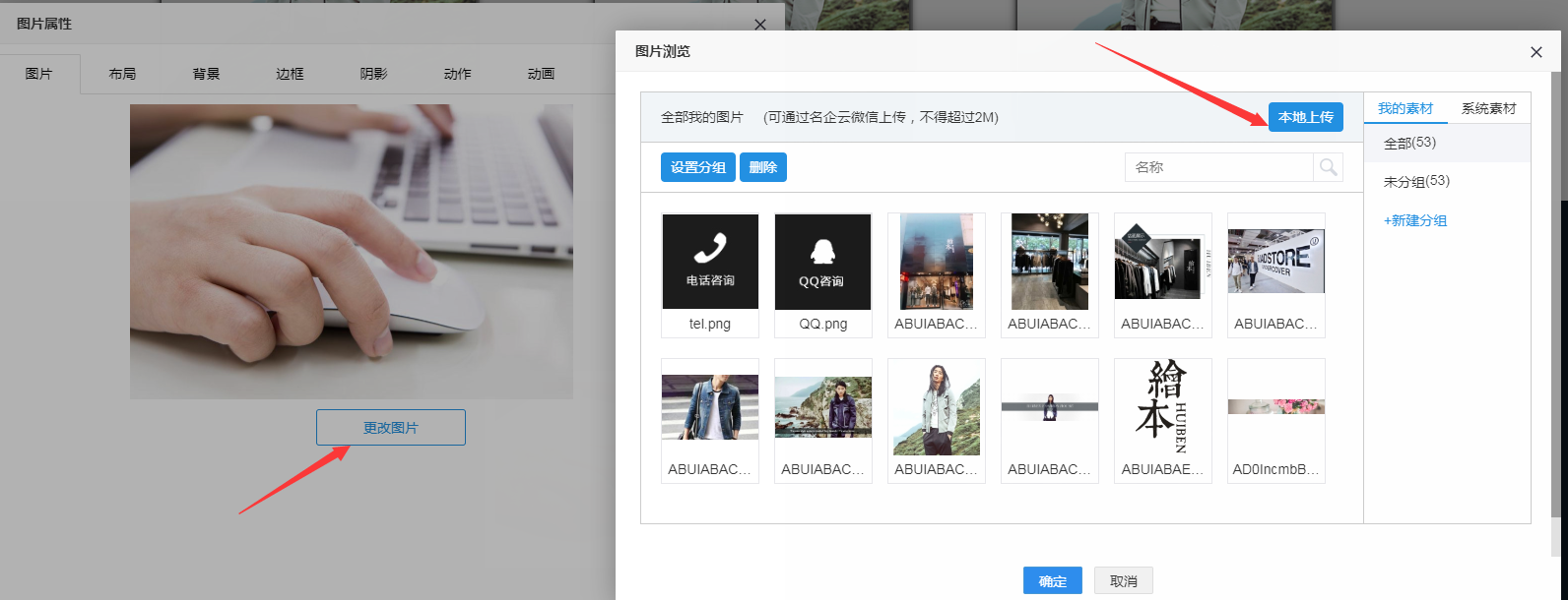 在制作网站的时候,如果发现其他优秀案例的图片还不错,但是自己网站却没有,则可以点击【更改图片】【本地上传】上传图片即可。
