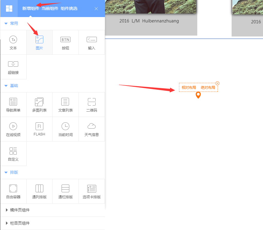 点击左侧的“模块”,选中【新增组件】【图片】拖至网页中: