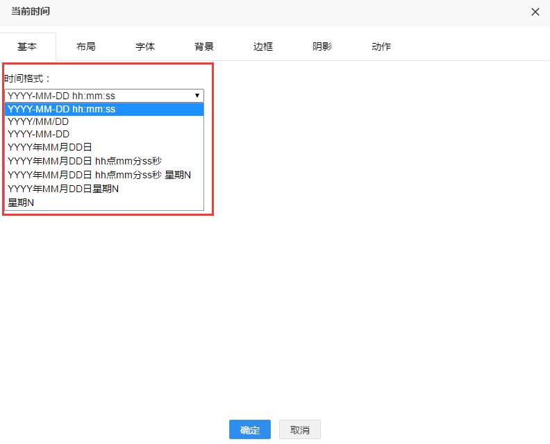 时间格式设置完成以后,可以设置时间布局、字体、背景、边框、阴影、动作。 详见:(如何设置布局、如何设置字体....等文章), 故不赘述。