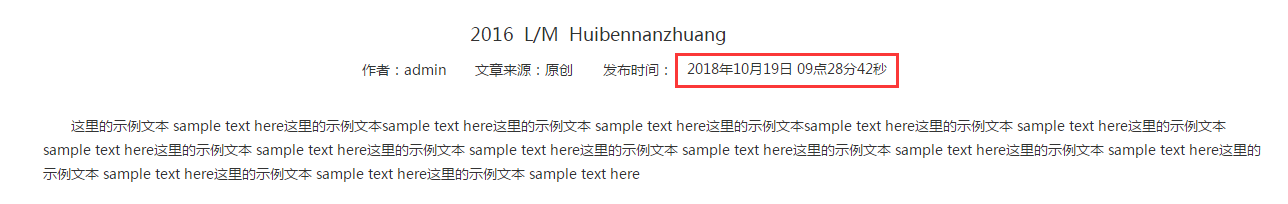 注意:箭头所指红色框中的时间是系统当前的时间,如详细页中需要发布时间,则可以用文本进行创建。