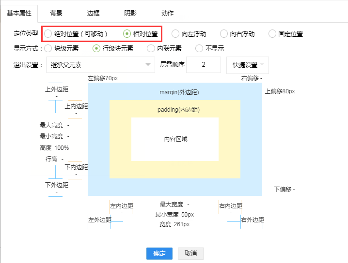 在建站系统中主要在两个地方出现:一个是组件属性布局板块,另一个是添加组件(非容器组件)时,会出现相对布局和绝对布局的选择项: