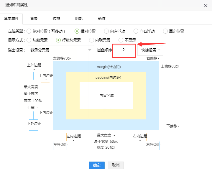 另外,我们可以设置它的层叠顺序来调整它的堆叠顺序。调整界面如下:
