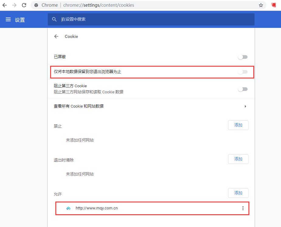 (2)仅添加允许名企云启用cookie。如下图: