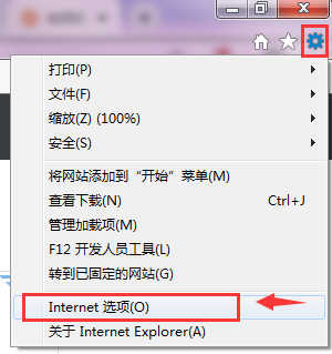 1.点击齿轮状按钮或者工具菜单,选择“Internet选项”。