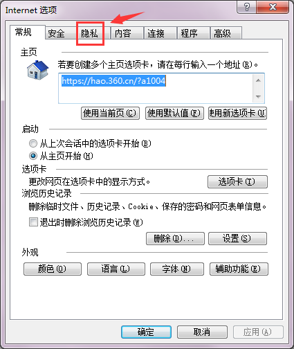 3. 打开“internet选项”后,选择“隐私”按钮。