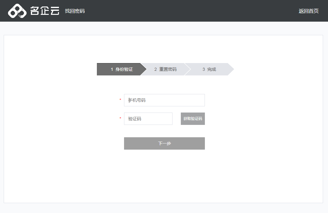 方法二:直接打开名企云找回密码地址:http://www.mqy.com.cn/login/get_back1.html,按页面引导重置密码即可。