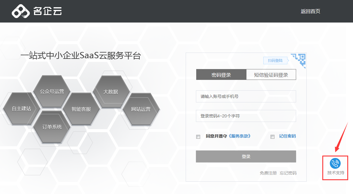 方法三:若短信验证不可用,则可联系客服找回密码。在登录页或者密码找回页右下角均有技术支持的按钮,点击即可获得在线技术支持。