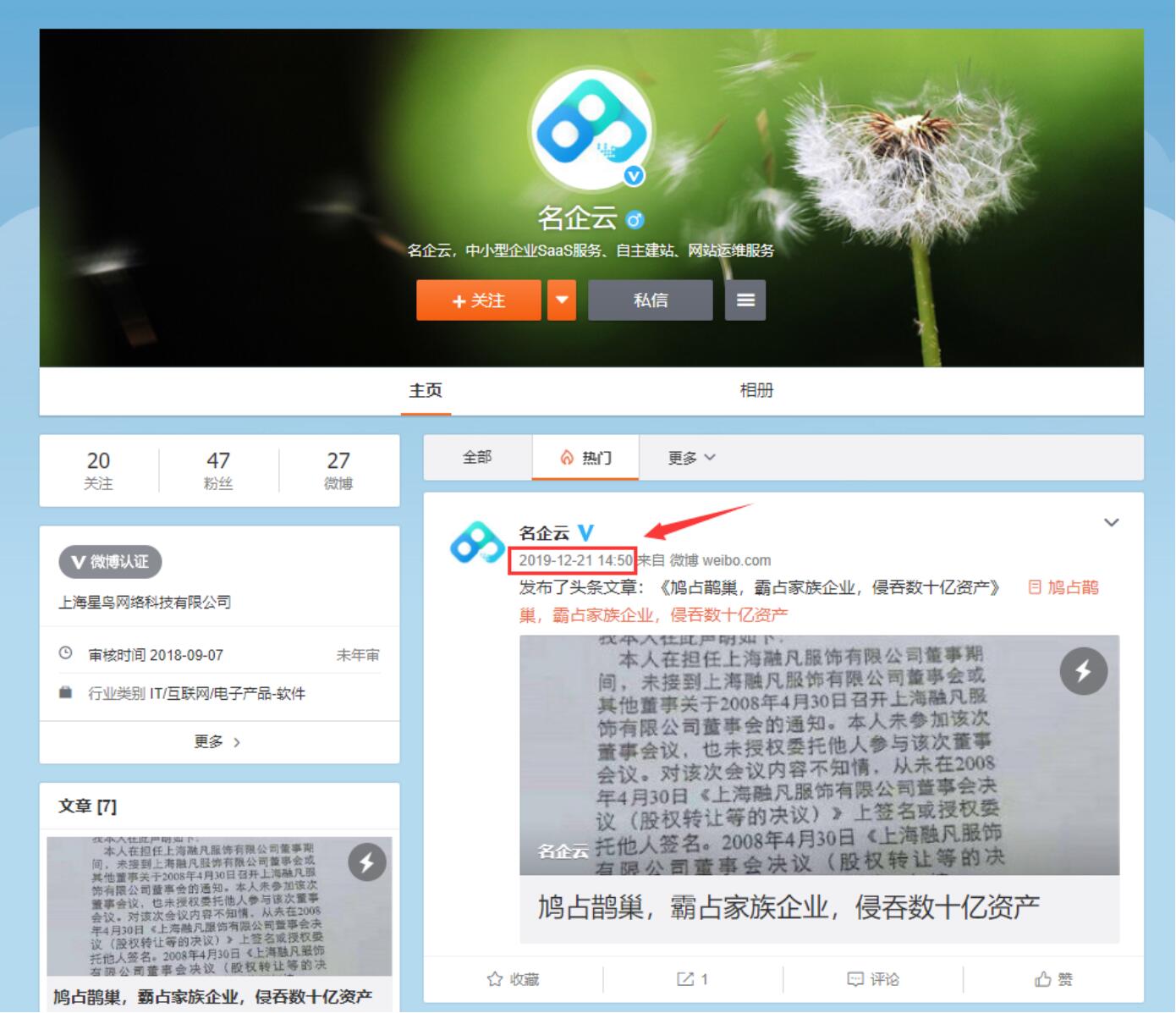 说明:“oid”后的数据是当前查看的微博ID,也即名企云的微博ID。