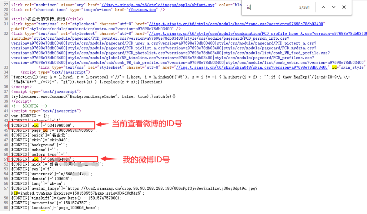 “uid”后面的数字则是浏览者的微博ID。