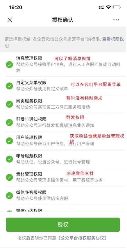 微信公众号运营平台需要授权哪些权限?