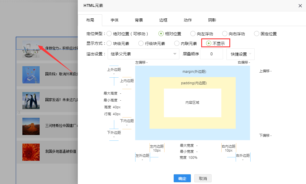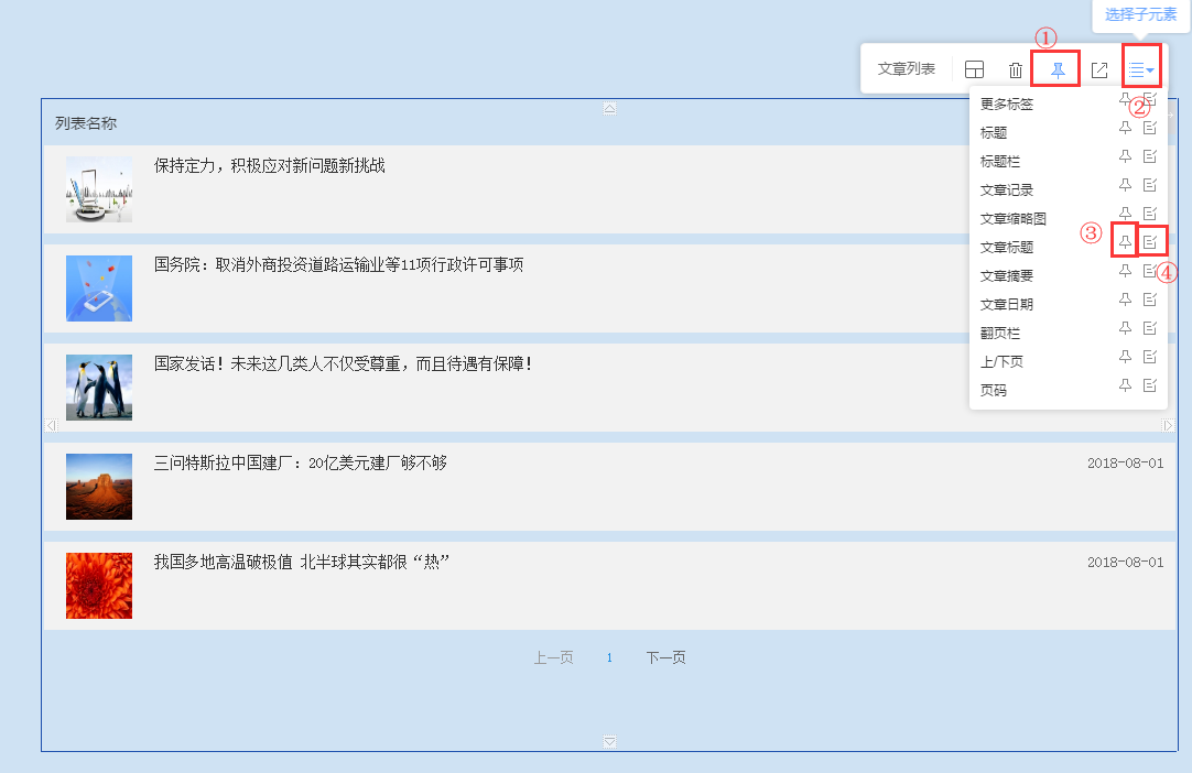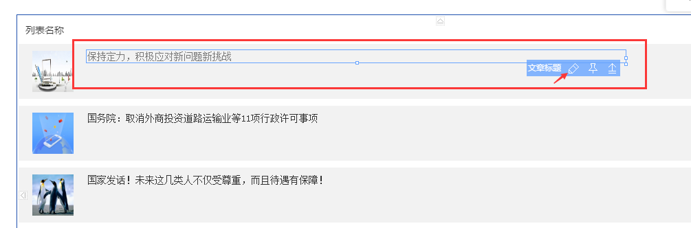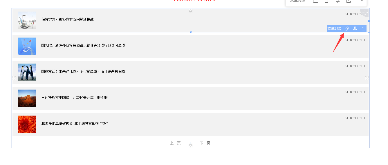 1. 将鼠标移至文章列表,点击文章记录编辑按钮,弹出设置窗口的属性,如图所示: