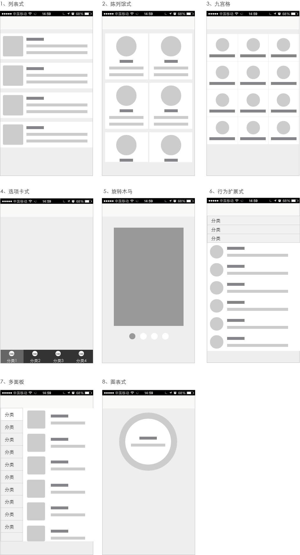 5,旋转木马式 6,行为扩展式 7,多面板式 8,图表式