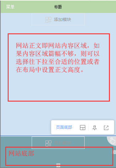 2,网站底部可以按需进行设置,如果篇幅不够可以选择往下拖或者直接在页面底部的布局中调整高度。如图所示: