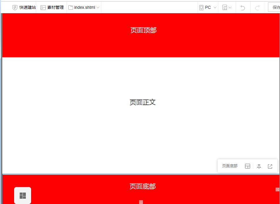 点击“ 新建版本 ”进行创建空白模板,空白模板分为三大部分 页面顶部 页面正文 页面底部。如图所示: