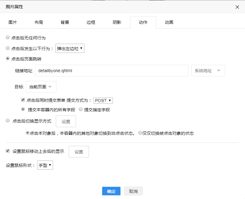 注:如页面有表单,则可以选择提交表单,需要选择表单提交方式(post/get)。