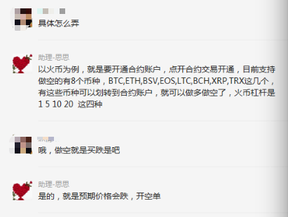 更让他觉得怪异的是,“大师”居然觉得投资主流虚拟币的游戏不够刺激,都提议希望通过杠杆的形式,进行做空或者做多。尽管PK的标准依旧是以比特币、莱特币、以太坊等主流数字货币的涨跌,群助理却推荐了一个可以杠杆投资、交易的平台应用。