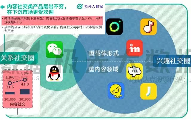 极光发布的2019年Q2移动互联网行业数据研究报告显示,微博客用户出现明显下滑,而内容社交已经成为当下的新风口。在巨大需求之下,微博客发展触顶之际,微博重整自身既有优势,杀入"垂直社区"领域,显然是提振信心的举动。