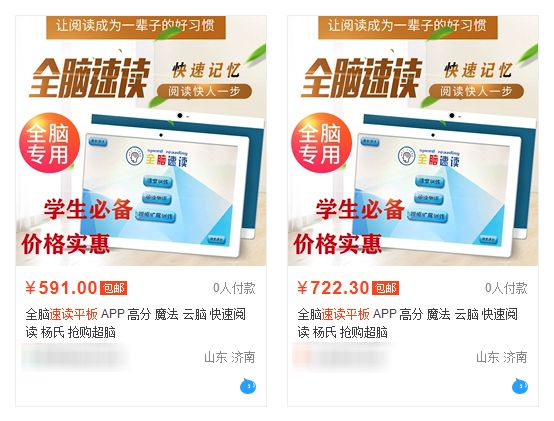 淘宝上的速读平板,售价轻松可达几百元。来源:淘宝截屏