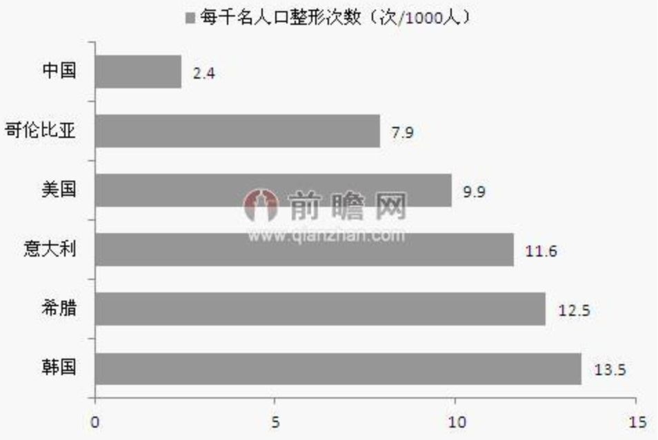 韩国的整形美容业一年产值有600多亿美元,占到GDP的4%,2013年英国《经济学人》杂志做过调查,在韩国,每1000人中动过整形手术的次数高达13.5次,远远超过其他国家。