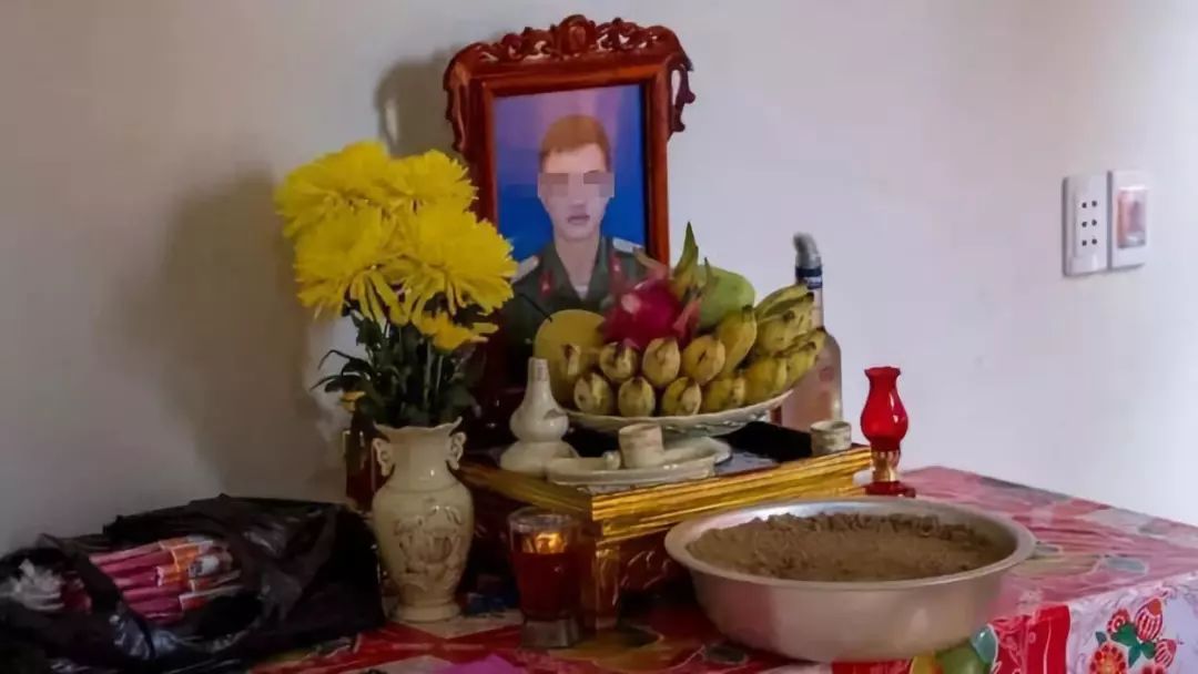 一位亲戚在Bui Thi Nhung的照片前面点燃了一柱香