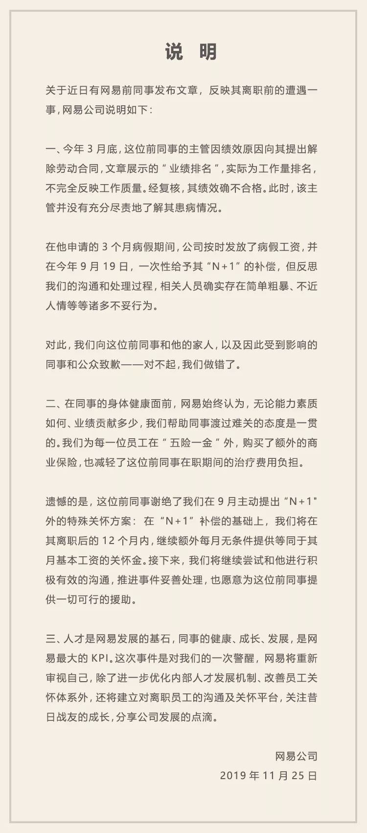 11月25日,网易公司对“暴力裁员”事件作出回应。